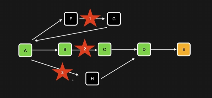 예를 들어 아래의 그림에서 2번 장애는 main 흐름에 장애가 발생하고 있으므로 S0의 장애 등급을 받을 수 있지만 1번 장애(재로그인이나 재가입 등의 케이스가 되겠다.)의 경우 S1의 등급을 받을 수 있다.